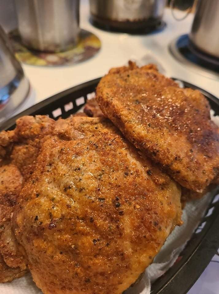 Place in the frying pan and cook over medium heat for about 4-5 minutes per side, until deep golden brown and the internal temperature of the pork reached 145F.